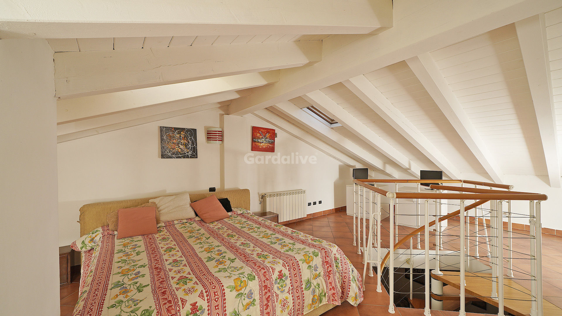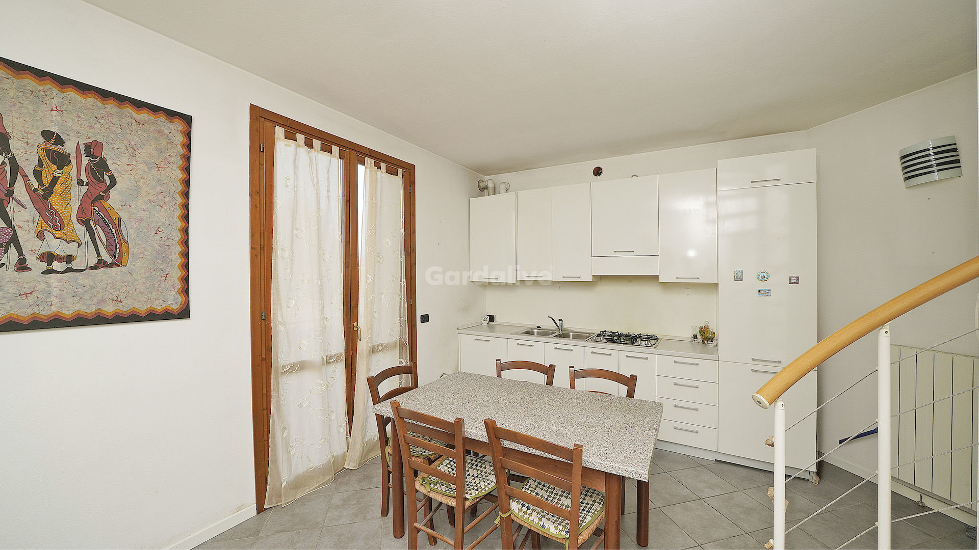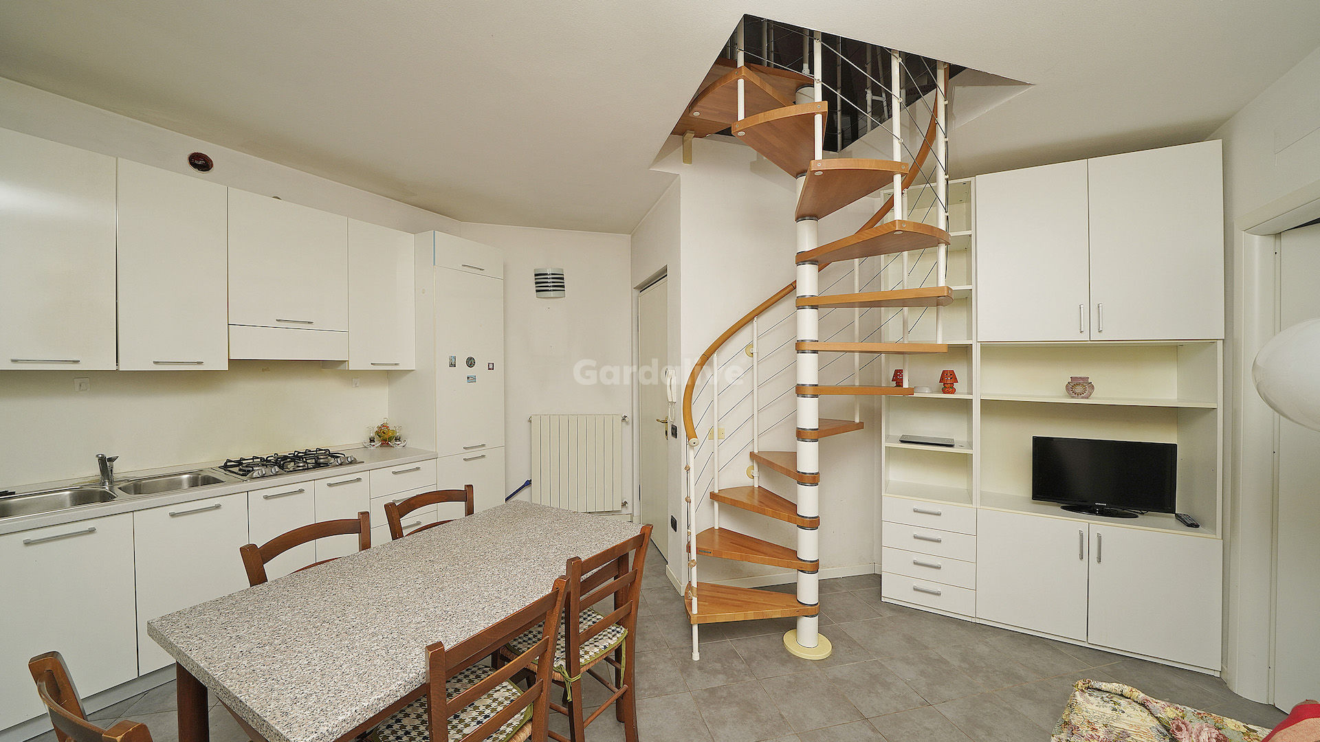 In un curato contesto residenziale dotato di piscina, situato in posizione comoda ai principali servizi — supermercati, alimentari e scuole — e a pochi minuti a piedi dal lago, proponiamo in vendita un appartamento bilocale con sottotetto, posto al primo e ultimo piano.