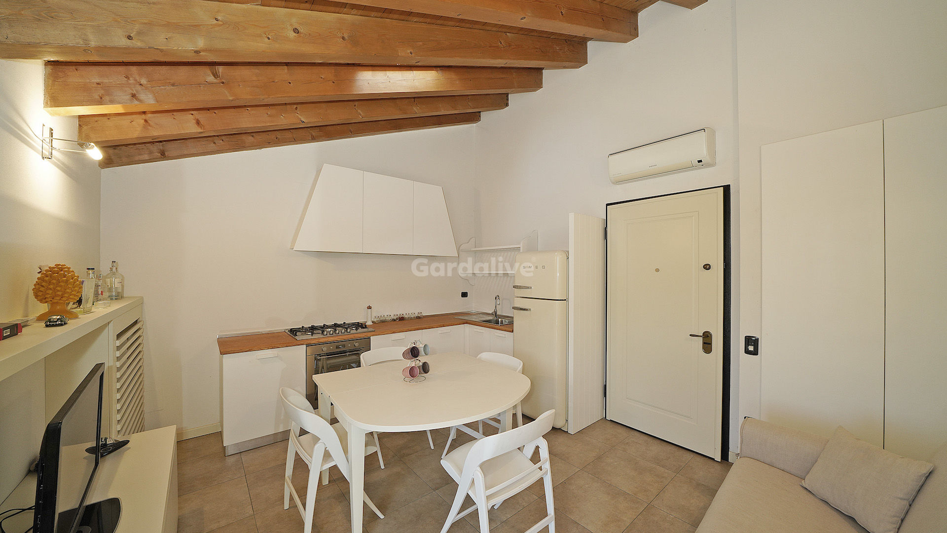 L’immobile si presenta in ottimo stato, con buone finiture tra cui portoncino blindato, pavimentazioni curate e serramenti di qualità. L’assenza di sfoghi esterni è ampiamente compensata dal contesto di pregio, dalla presenza della piscina e dalla posizione unica nel centro storico, soggetta a vincoli che ne preservano il fascino nel tempo.