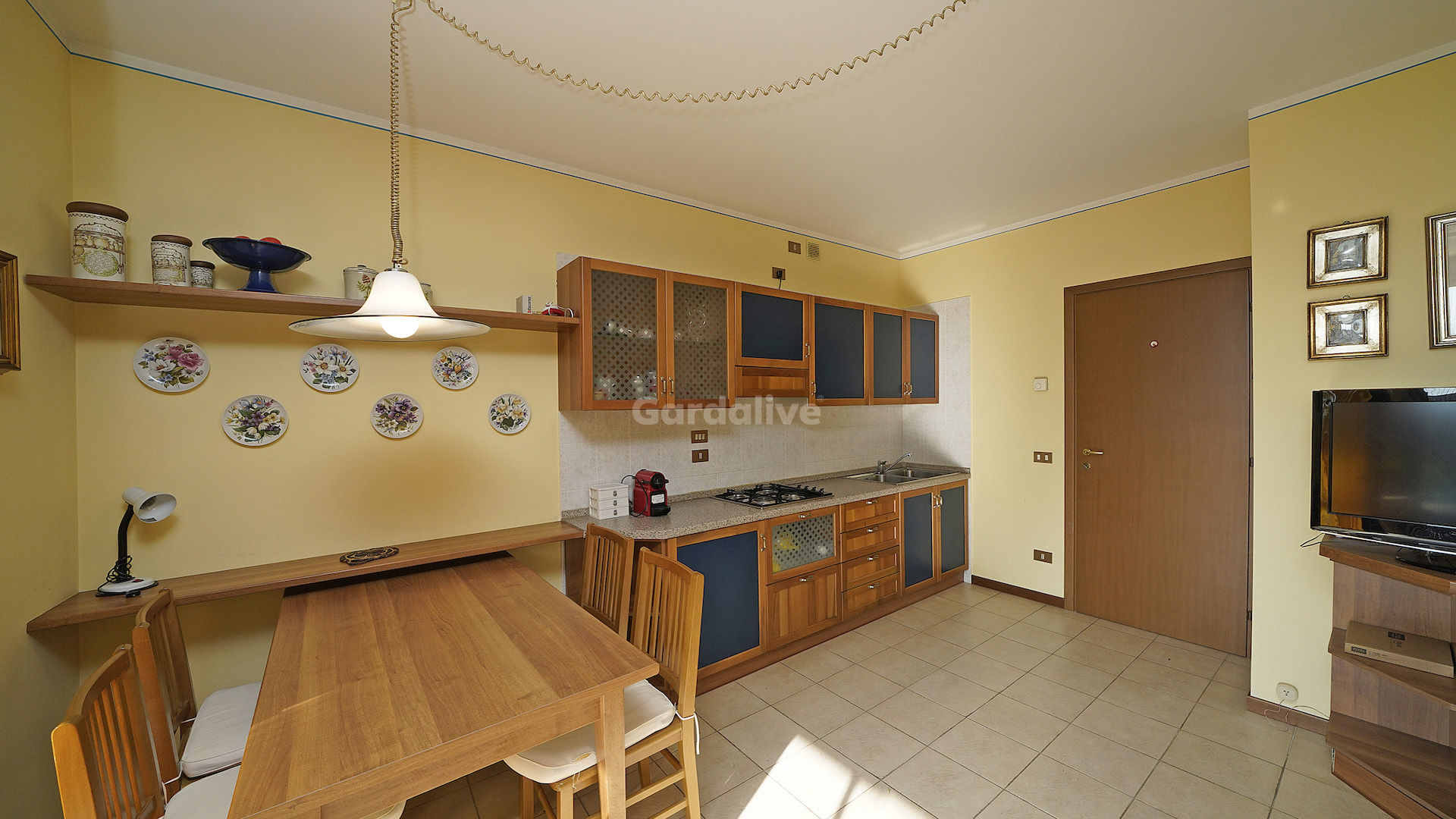 L’ingresso conduce alla zona giorno con parete cucina e accesso diretto al portico coperto e al giardino privato, da cui si può ammirare una splendida vista lago. La zona notte comprende una camera matrimoniale e un bagno con doccia.