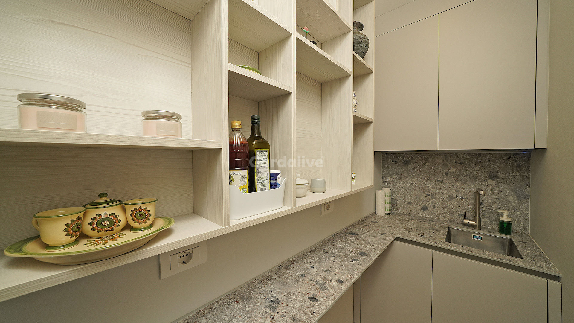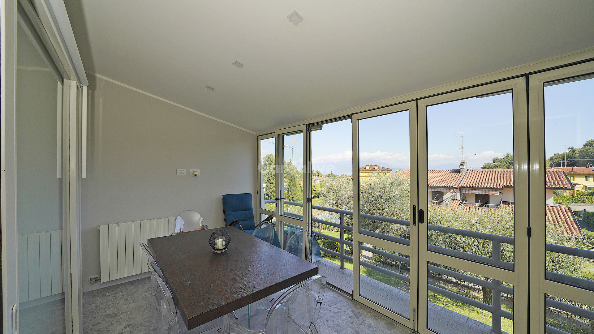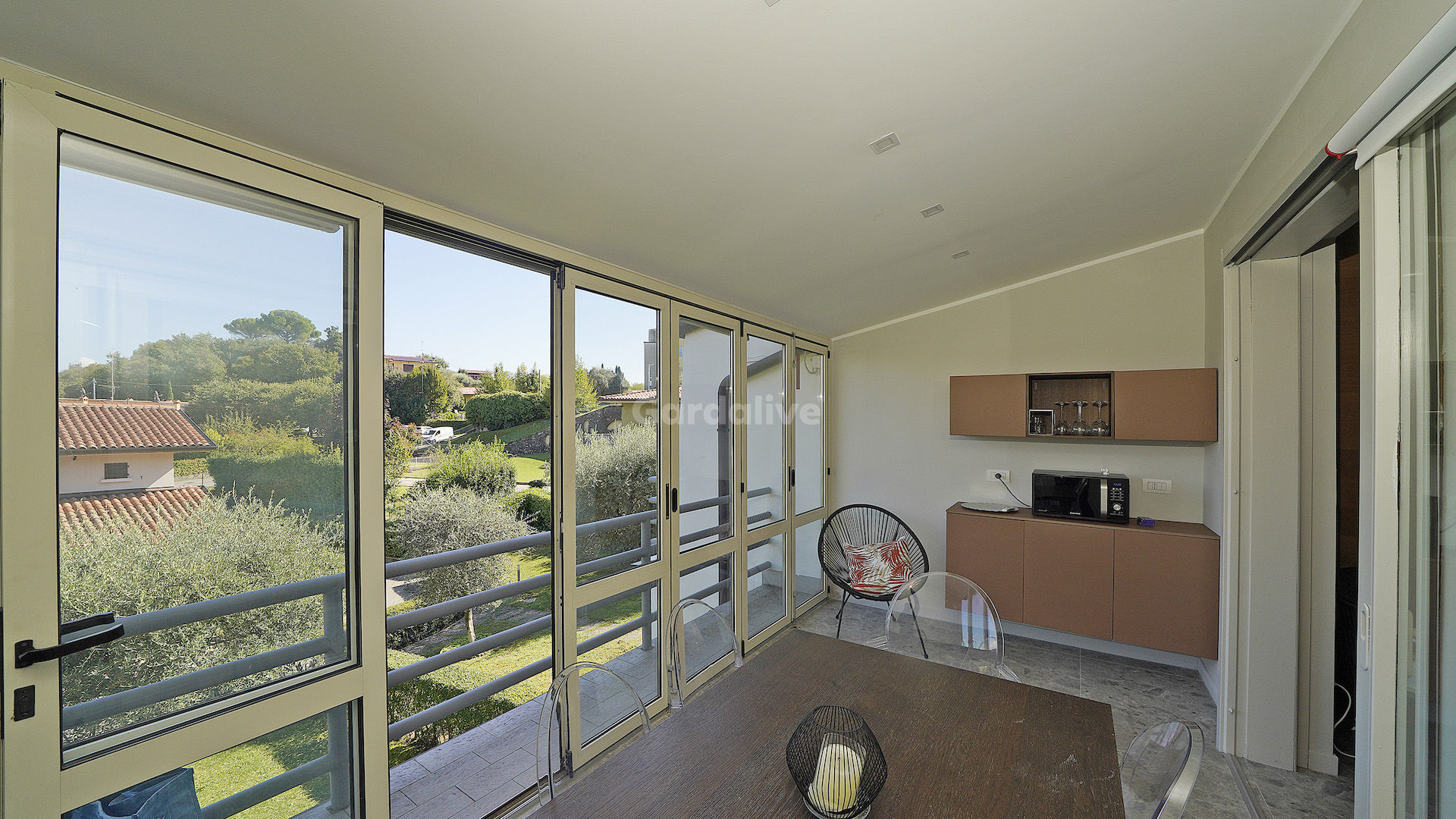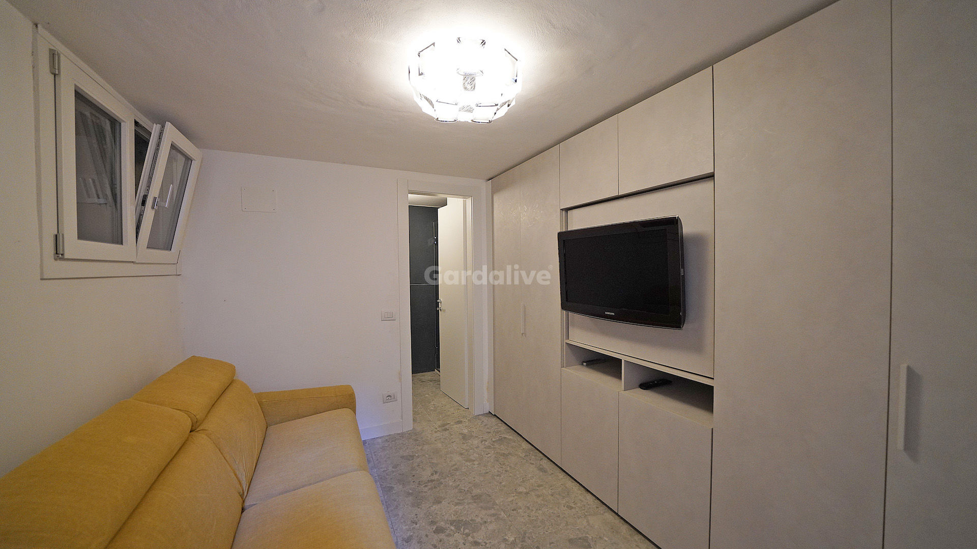 L’immobile si trova al primo ed ultimo piano ed è stato completamente ristrutturato a nuovo con grande attenzione ai dettagli. L’ingresso apre su una luminosa zona living con due poltrone letto di design e cucina a vista, eventualmente separabile. La vera protagonista è la terrazza verandata di ampie dimensioni, con scorcio di vista lago e panorama aperto, fruibile tutto l’anno come naturale estensione della zona giorno. La zona notte è composta da una camera matrimoniale con balcone e da un bagno finestrato moderno e rifinito con gusto.