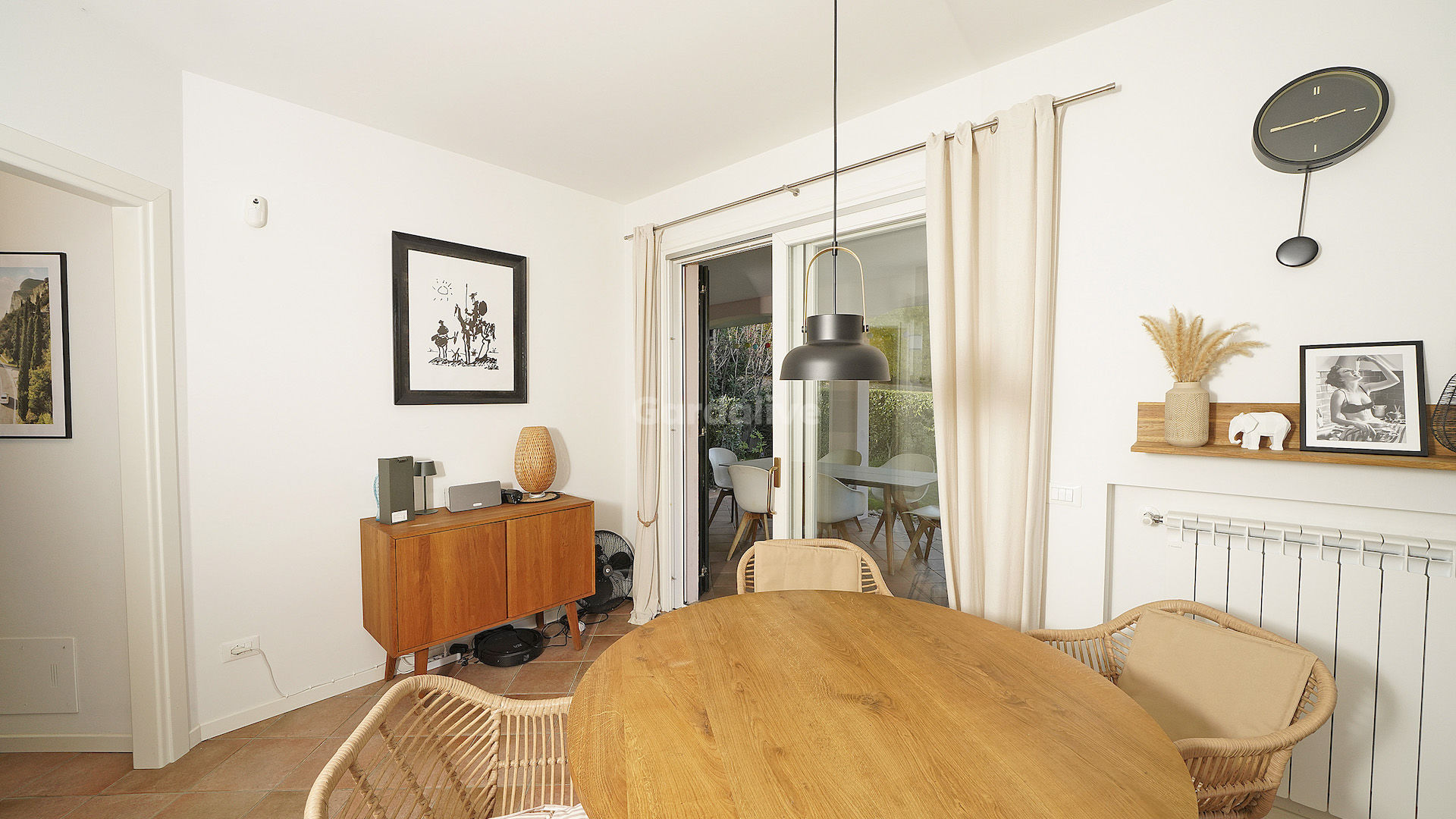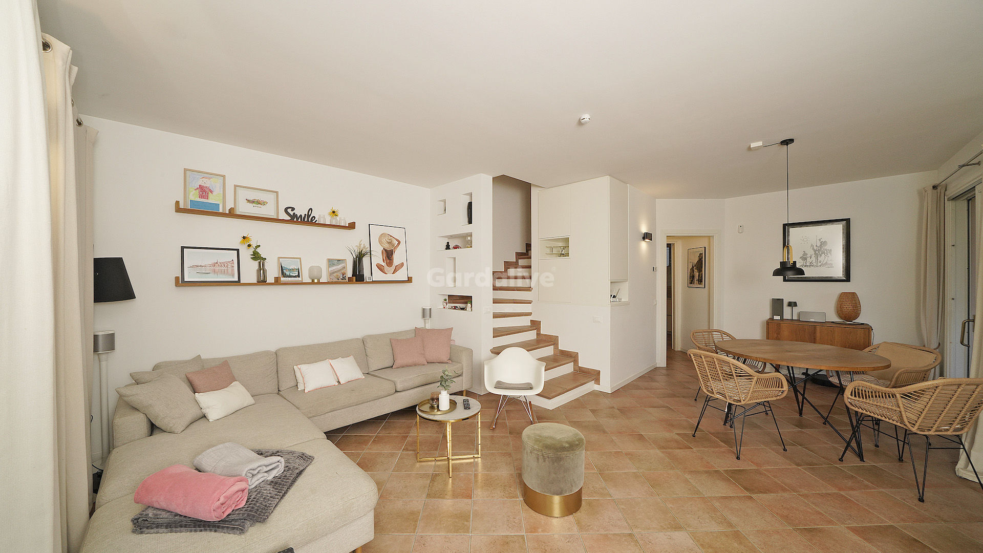 All’interno di un residence curato, dotato di piscina e ampi spazi verdi, proponiamo una villetta di testa su due livelli, completamente ristrutturata e arredata con gusto.