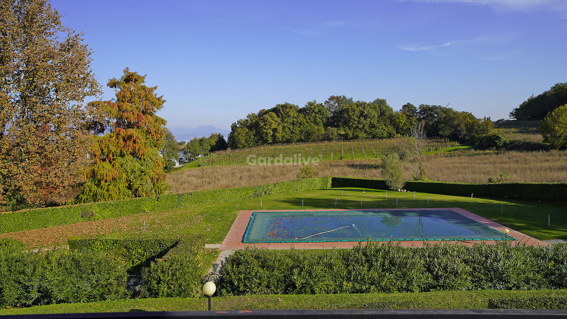 Al piano terra si sviluppa la zona giorno con un ampio soggiorno affacciato sul portico vista piscina, cucina separata e bagno di servizio. Al piano superiore si trovano una camera doppia, un bagno finestrato con doccia e una camera matrimoniale con accesso diretto al balcone, da cui si gode uno scorcio di vista lago e della piscina. L’abitazione è circondata su tre lati da un grande giardino privato, arricchito da due portici coperti e un’area barbecue perfetta per serate estive e grigliate strategiche.