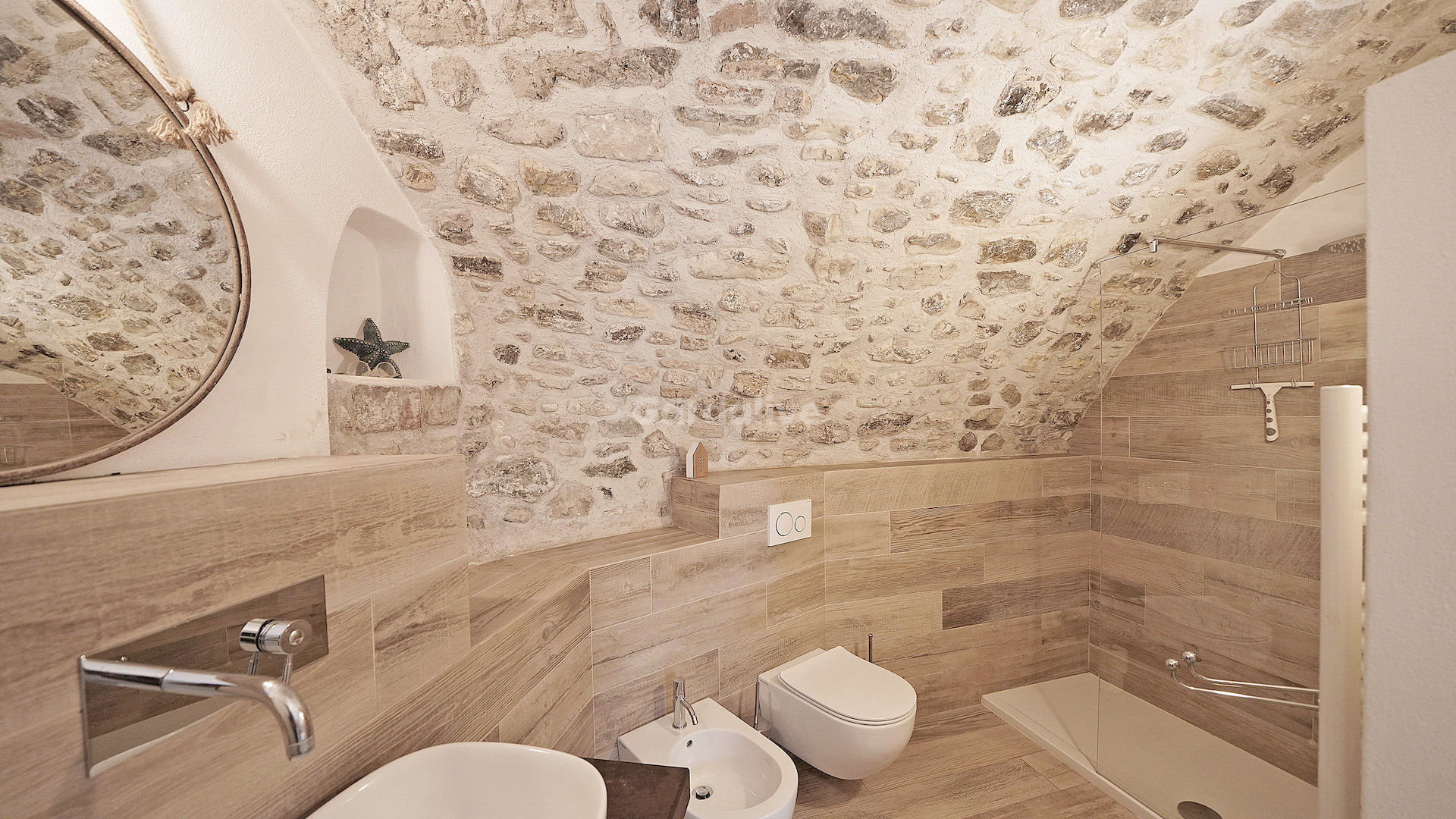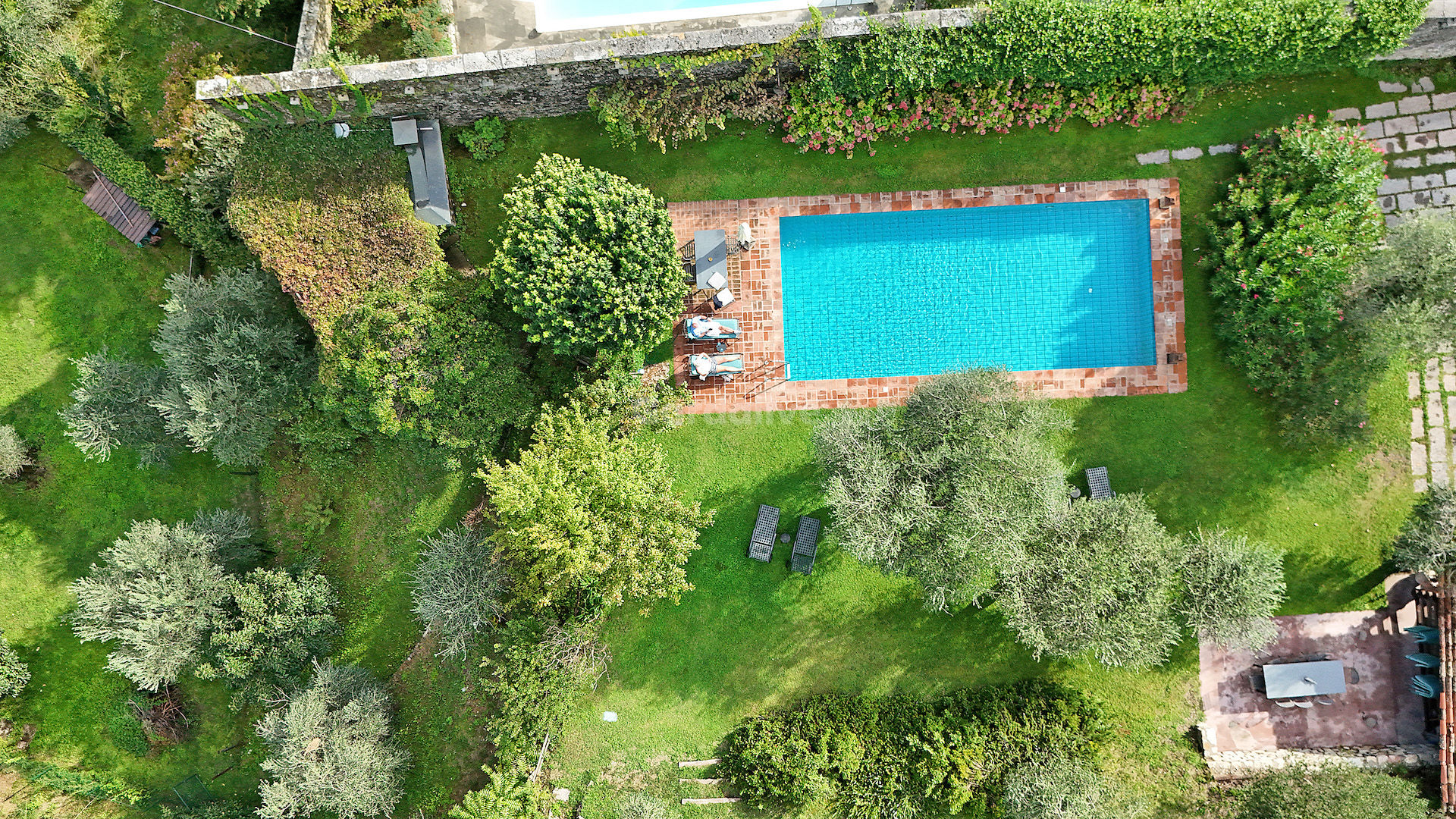 Das Anwesen ist nun in Wohnungen unterteilt, die unter vollständiger Berücksichtigung der historischen Bedeutung des Hauses renoviert wurden. Sichtbare Balken, handgefertigte Terrakottaböden, alte geölte Lärchenböden und originale, wiederverwendete Fensterrahmen prägen ihre Struktur und Authentizität. Große Terrassen und Balkone bieten Seeblick und eine einladende Umgebung für Momente der Entspannung und Mahlzeiten im Freien.