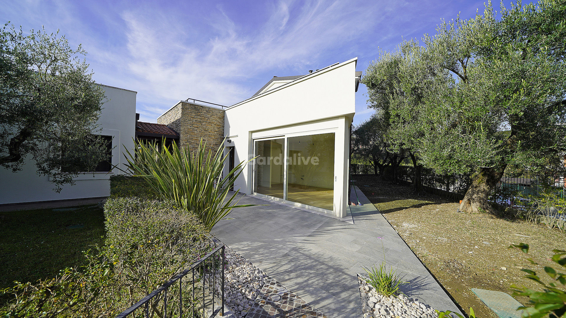 In hügeliger und ruhiger Lage mit herrlichem Blick auf den Gardasee bieten wir eine großzügige, freistehende Villa zum Verkauf an, die von Grünflächen umgeben ist und mit wertvollen Olivenbäumen bepflanzt ist, die die authentische mediterrane Atmosphäre unterstreichen. Das Haus erstreckt sich über drei Ebenen und ist perfekt für diejenigen, die ein gemütliches und funktionales Zuhause suchen. Im Erdgeschoss befindet sich ein heller und geräumiger Wohnbereich mit Wohnzimmer und offener Küche, der für ein offenes und geselliges Wohnen konzipiert ist. Auf dieser Etage befinden sich außerdem zwei Schlafzimmer und ein modernes Badezimmer.