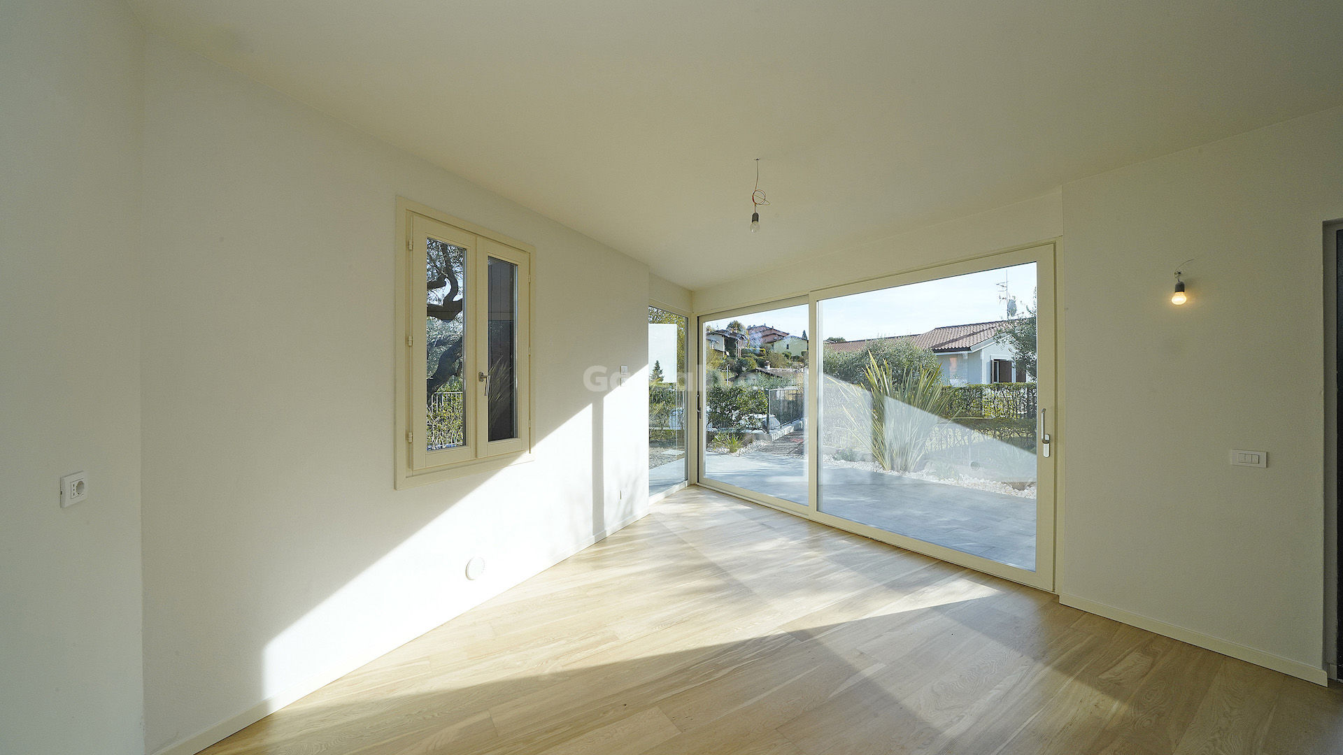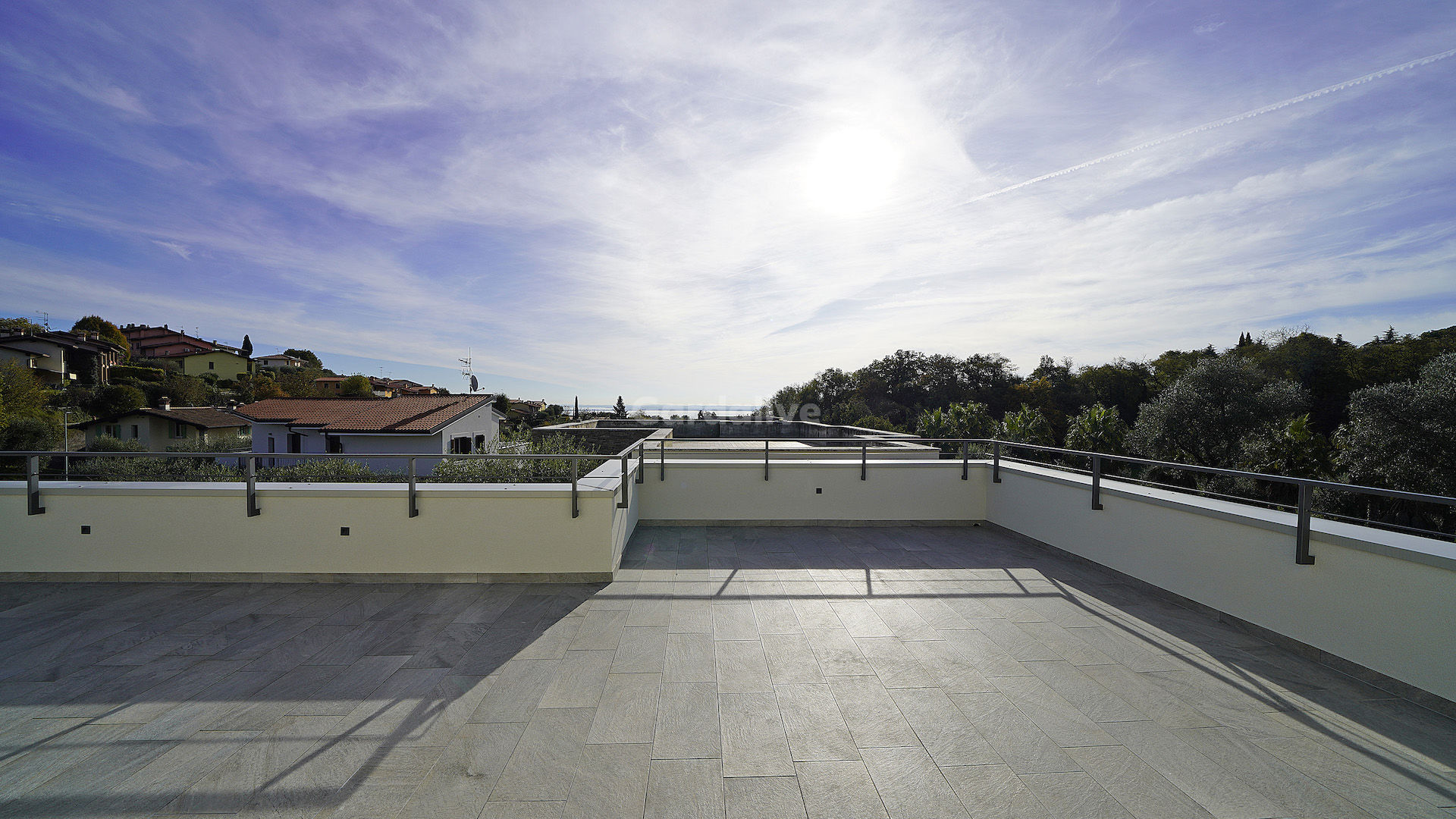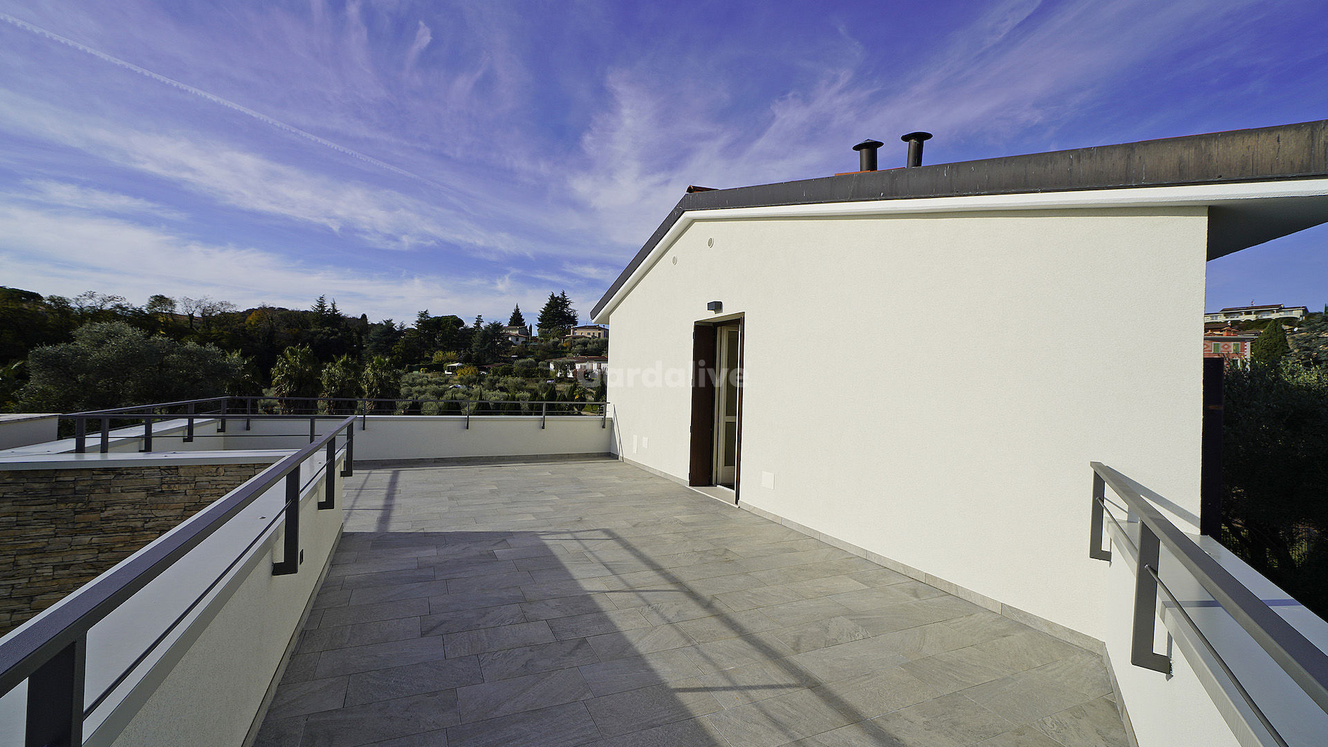 Im Obergeschoss befindet sich das Hauptschlafzimmer mit eigenem Bad und direktem Zugang zu einer großen Sonnenterrasse, von der aus man einen spektakulären Blick auf den See und die umliegenden Hügel genießen kann, ein exklusiver Ort, um sich zu entspannen, Sonnbaden oder einen Aperitif bei Sonnenuntergang zu genießen.
