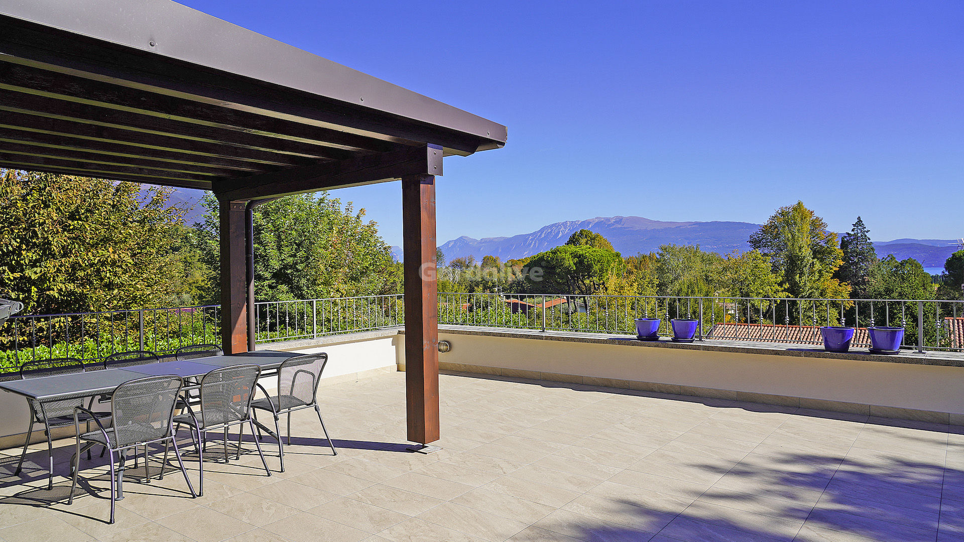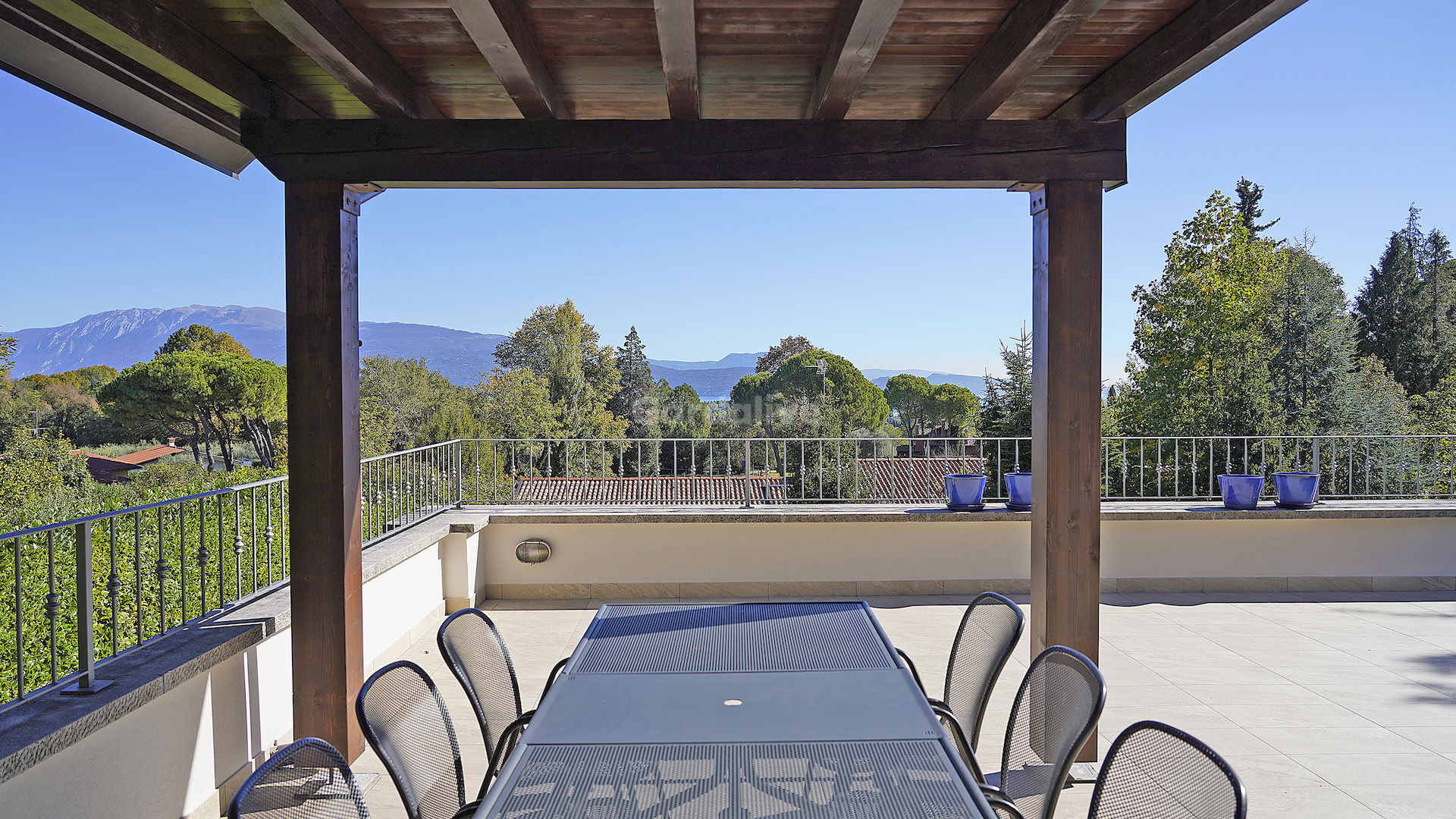 Innentreppen aus Holz führen zur fantastischen Terrasse mit Blick auf den See, die sich durch eine Pergola auszeichnet, wo man die warmen Sommerabende entspannt oder in Gesellschaft von Freunden genießen kann.