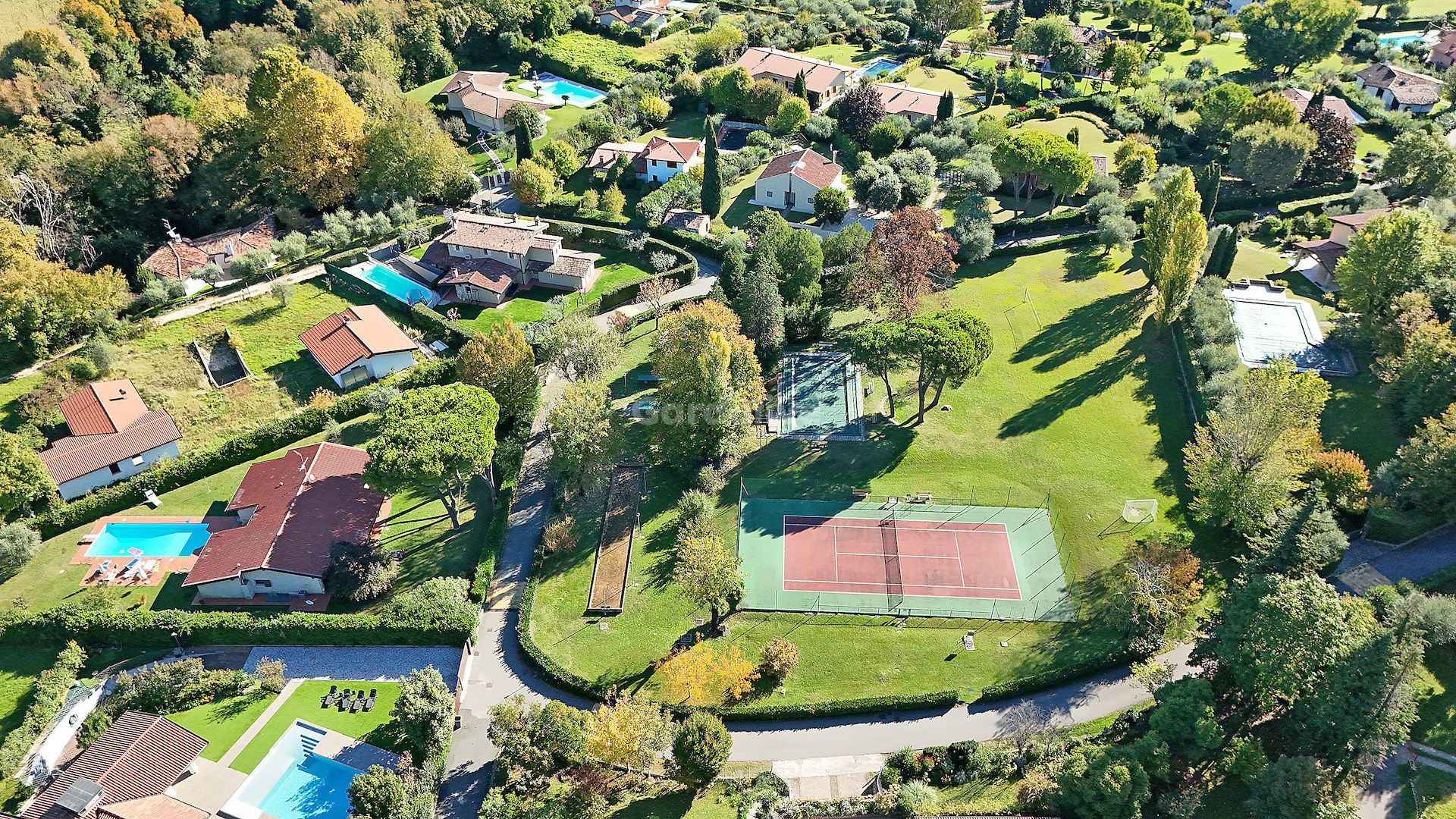 San Felice del Benaco, Gardasee – Nur wenige Kilometer vom historischen Zentrum von San Felice del Benaco und Salò entfernt bieten wir eine elegante, kürzlich renovierte Villa an in einer exklusiven, grünen und ruhigen Wohnanlage, die ausschließlich aus Einfamilienhäusern besteht, die sich einen Swimmingpool und einen Tennisplatz teilen.