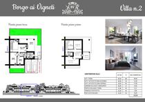 Die Villa ist 172 Quadratmetern groß, die sich auf zwei Ebenen verteilen: Im Erdgeschoss öffnet sich ein gemütlicher Wohnbereich auf einer großen Terrasse, der zu jeder Jahreszeit ideal ist, um die Außenbereiche zu genießen. Die helle und funktionelle Küche hat eine Fenstertür, die direkt in den Garten führt, ideal um im Freien zu frühstücken. Der Schlafbereich bietet zwei geräumige Schlafzimmer und ein komfortables Bad.
