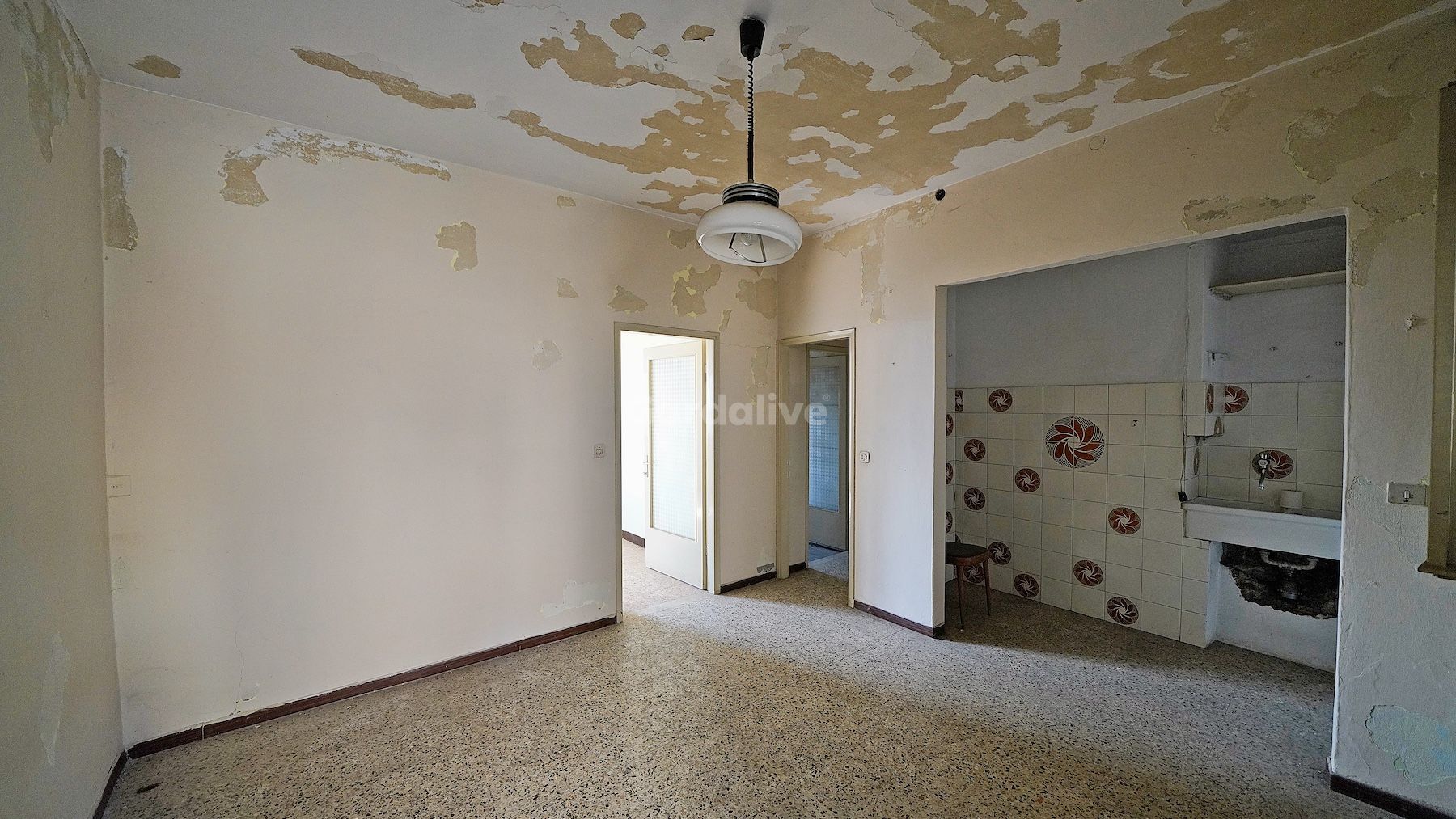 Die Immobilien, heute getrennt und unabhängig, bewahren faszinierende Elemente: stimmungsvolle Gewölbekeller aus Stein und einen Balkon, der die Fassade entlangläuft.