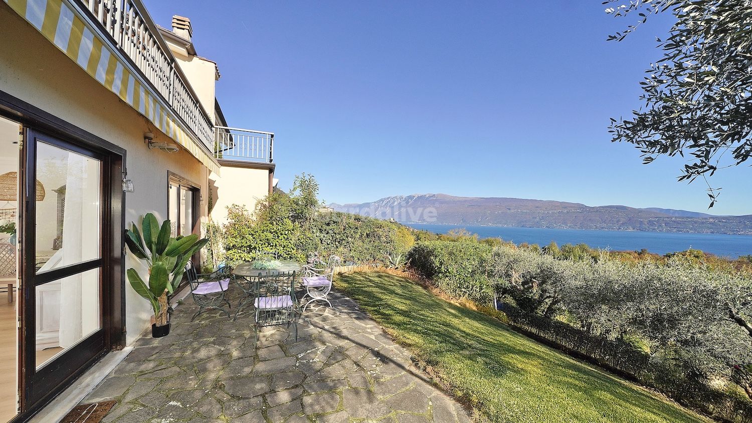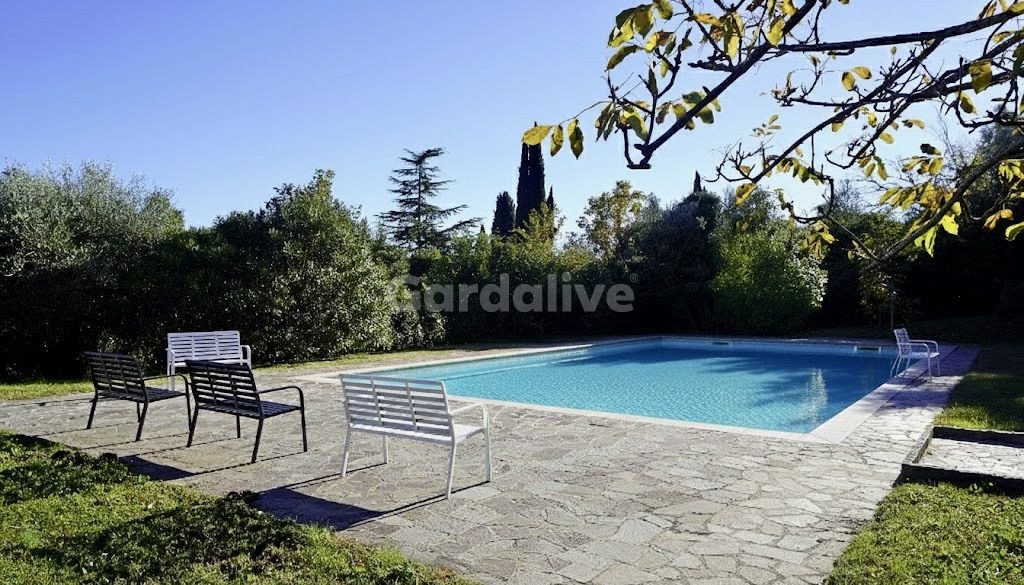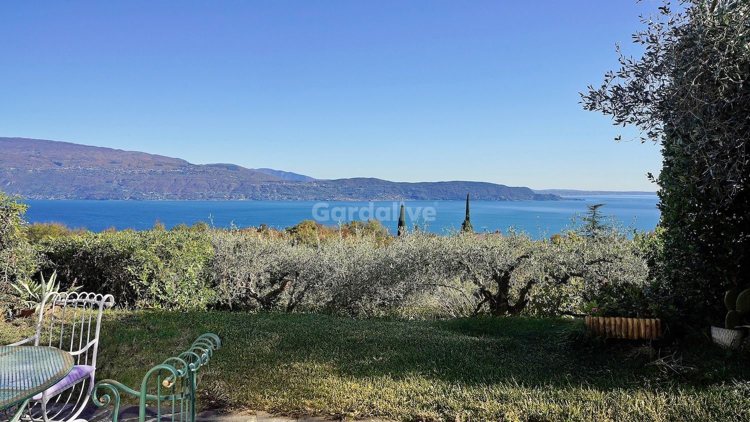 Der private Garten, teilweise gepflastert, eignet sich ideal für entspannte Momente sowie für Mahlzeiten im Freien und bietet einen offenen und eindrucksvollen Blick auf den Gardasee.